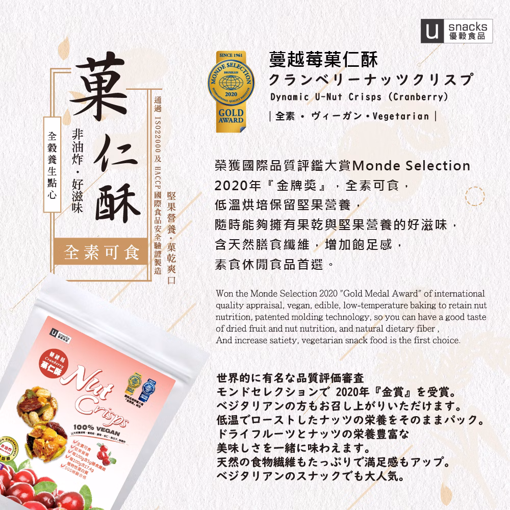 蔓越莓果仁酥 Dynamic U-Nut Crisps (Cranberry)